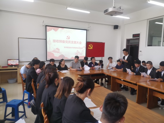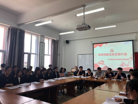 新闻网讯(通讯员 温靖瑶)为讨论徐希平等22名同志的入党,软件职业技术学院于2019年6月22日在应用楼413举行接收预备党员支部大会。由学生第二党支部书记霍阳主持本次大会。