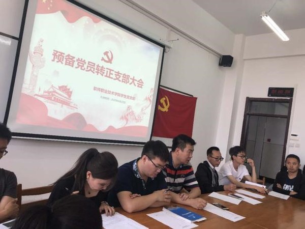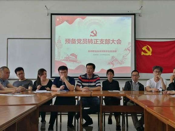 新闻网讯(通讯员 张鑫瑜 梅林)为讨论王成光等18名同志的转正问题,软件职业技术学院于2019年6月19日在应用楼413举行预备党员转正支部大会。由学生第二党支部书记霍阳老师主持本次大会。