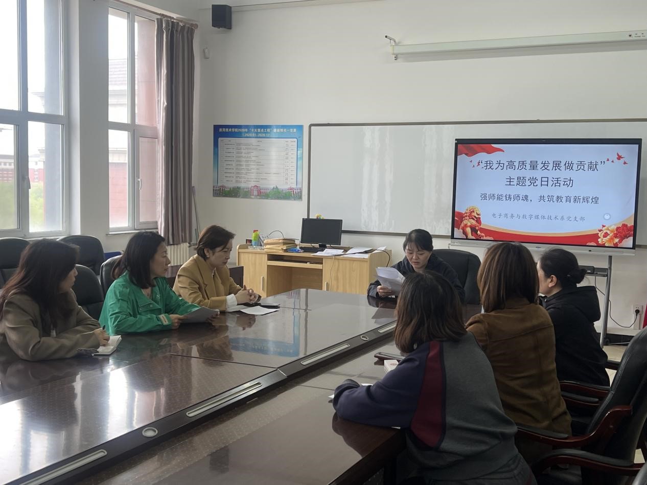 2025年5月9日,电子商务与数字媒体技术系党支部在应用楼405会议室举行“强师能铸师魂,共筑教育新辉煌”主题党日活动。活动以专题学习筑牢思想根基,以案例研讨激发实践动能,为党员教师专业素养与师德修养的双提升搭建平台,为学院人才培养和事业发展注入强劲动力。