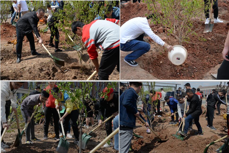 绿化校园,美化环境,展现应用师生爱校、爱院、爱奉献的精神风貌。2018年5月8日,学院党委倡议开展“师生林”植树活动。学院全体教师和毕业生党员积极响应,自愿捐款5200余元用于购买树苗、肥料和植树工具。在学院党政领导班子的带领下,应用学院全体师生在应用楼下的空地上热火朝天的开展了植树活动本次所栽种的树苗都是适应北方气候的果树,有杏树、梨树、海棠树和李树。大家认真学习植树要领,彼此分工合作,现场气氛忙碌而热烈