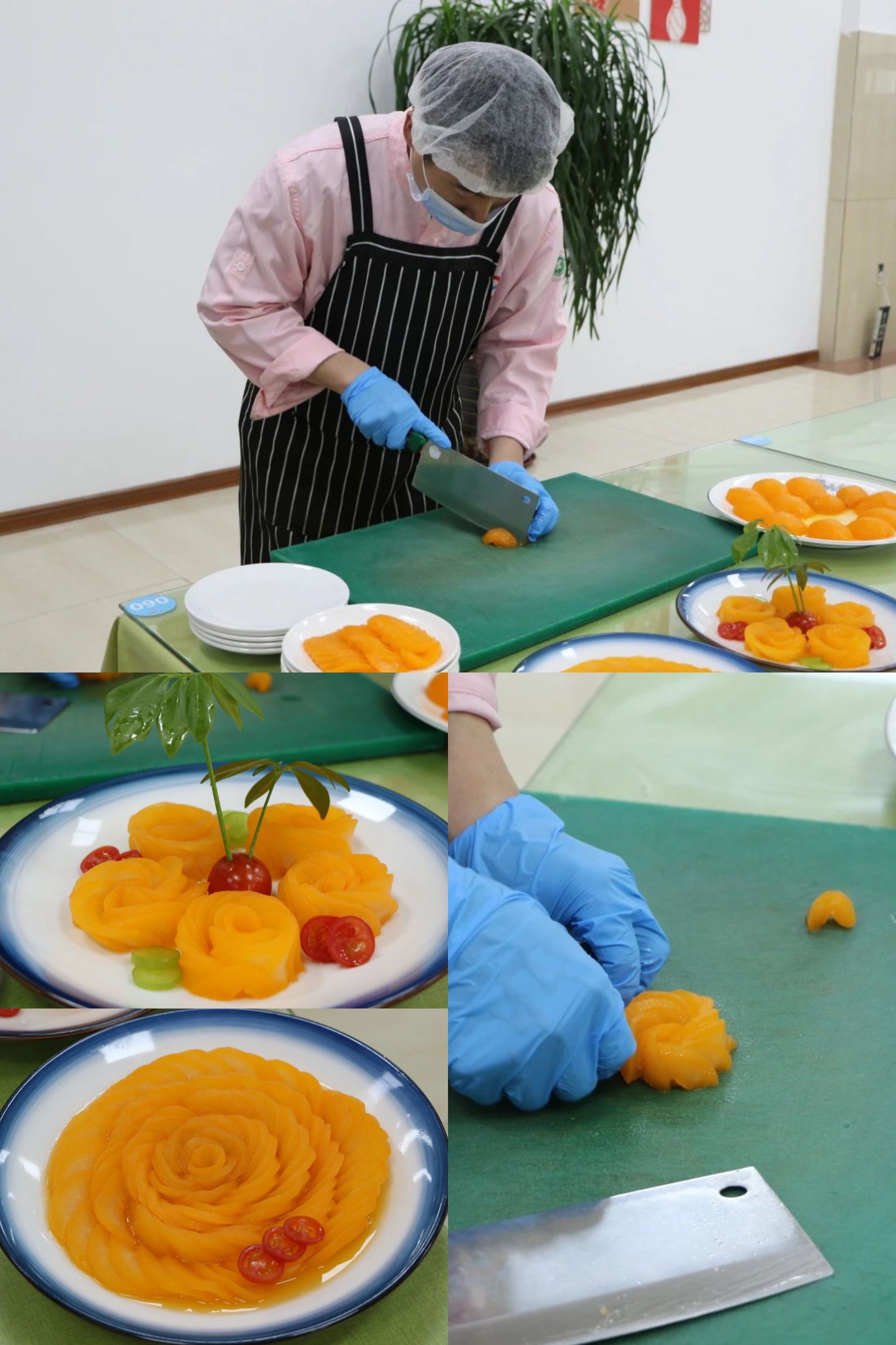 食堂厨师林先生为我们现场制作果盘“橙汁雪梨玫瑰”,让同学们品尝到了不一样的美食。