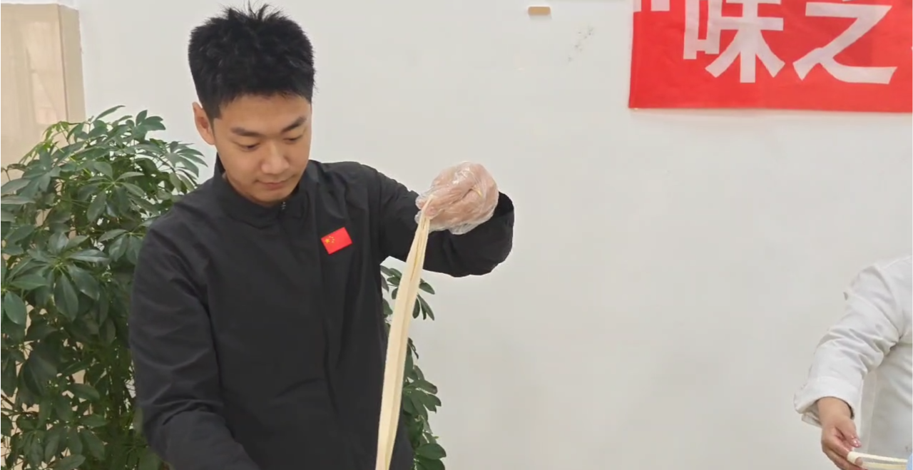 此次活动最让人期待的当属游戏环节!同学们分成三组,在问答游戏中,凭借参观时的细致观察和记忆,为小组赢得优先挑选小吃的机会;制作环节游戏中,大家按照面食制作步骤,齐心协力完成任务。在欢乐的游戏氛围中,同学们不仅收获了美味小吃,更在实践中提升了劳动技能,体会到合作的乐趣。