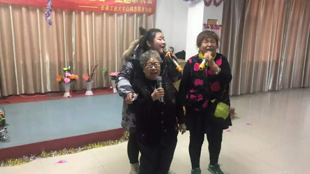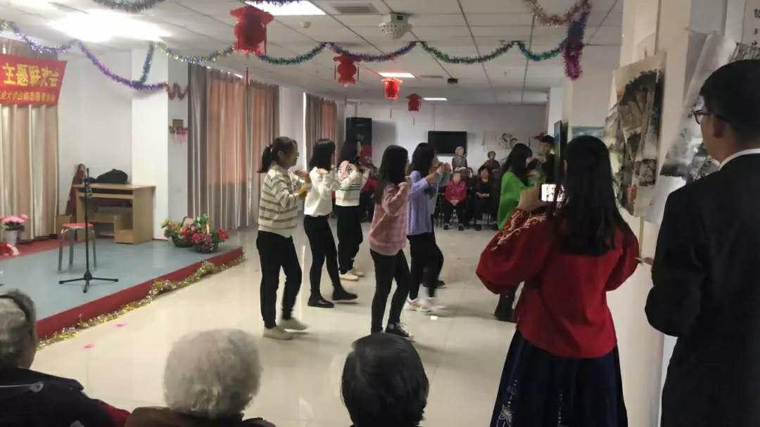 舞蹈串烧,小姐姐们脸上甜蜜的微笑,也感染了爷爷奶奶们,他们的脸上也露出灿烂的笑容。几首歌曲,《朋友》、《老男孩》、《父亲》唱得都很深情,志愿者们用歌声陪爷爷奶奶们度过了愉悦又难忘的一天。