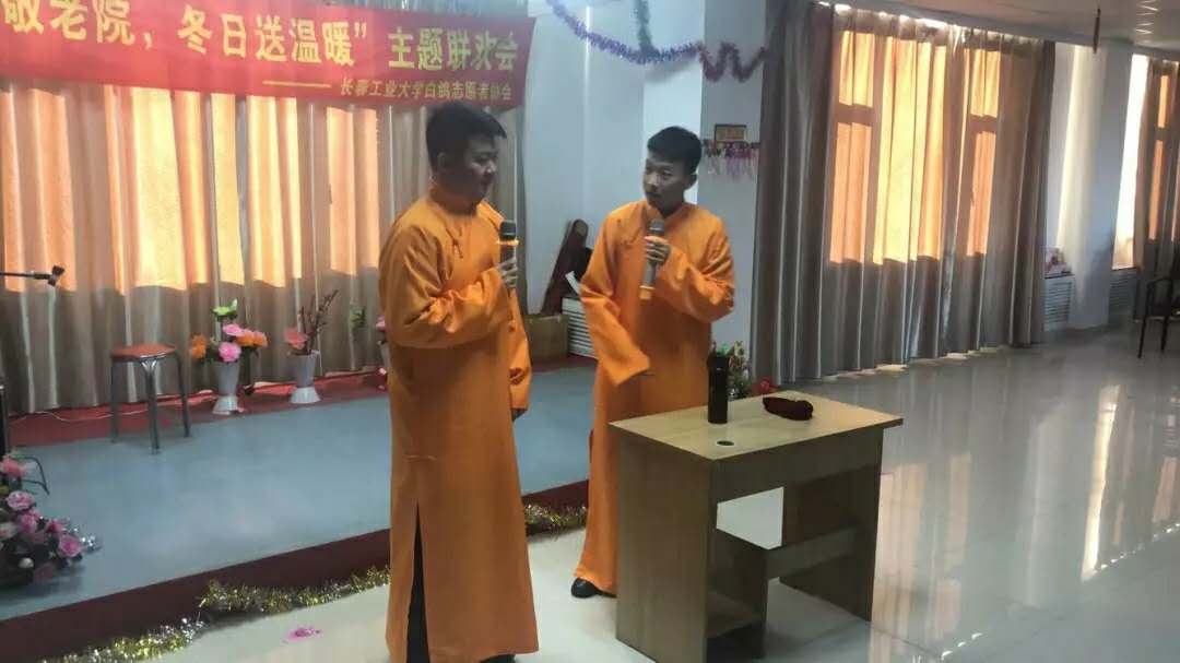 都知道老人们喜欢听二人转,志愿者们特地准备了二人转节目。相声《五红图》加二人转,给我们留下了很深刻的印象,不光相声讲得非常好,二人转唱得也不错,在他唱的过程中,爷爷奶奶们不自觉得跟着哼哼几句,还随着旋律拍手,夸他唱得好。