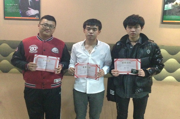 在比赛过程中选手们实力尽展,思维敏捷,行动熟练,在精彩开球之后,薄击球、侧旋球、跳击等精彩动作纷纷上演。淋漓尽致的展现出了自身台球的素质和水平。最终数控专业21318班赵英池同学夺得本次冠军,21319班吕麒夺得亚军,132403班李泽男夺得季军,此外还有五名同学获得最佳优秀奖以此奖励。