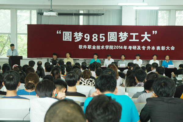 6月11日下午,召开“圆梦985 圆梦工大”2014年考研及专升本表彰大会,学院院长李万龙对同学们创造了学院专升本(172人)及考研(19人)历史最好成绩表示衷心的祝贺。他指出,这些成绩的取得,要归功于学生、老师、辅导员的共同努力和学校60多年沉淀的大学文化与大学精神。并希望同学们继续传承校训精神刻苦学习、努力工作,投身伟大中国梦,实现自己的人生价值。