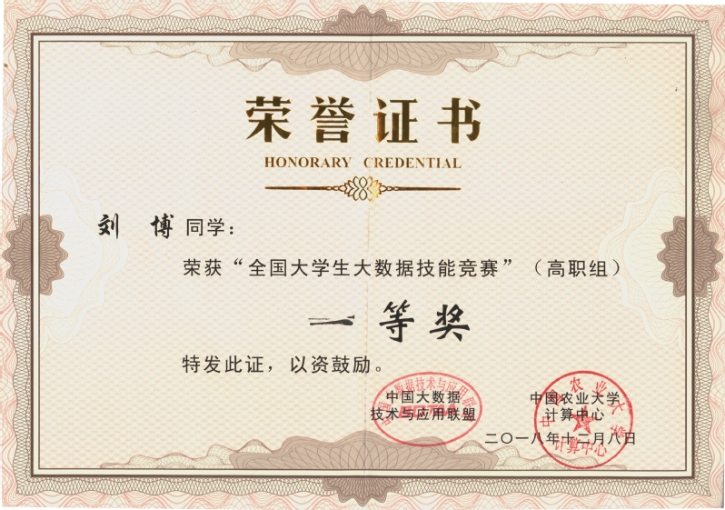 2018年12月8日,首届全国大学生大数据技能竞赛在中国农业大学大数据实验中心举行。我院电子商务专业2017级学生刘博获得高职组一等奖,2016级学生方诣获得高职组三等奖。王春影老师获“优秀指导教师”称号。