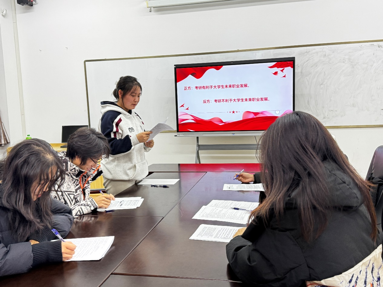 同学们踊跃组队,热情高涨。参赛队伍来自不同班级、不同专业,各有千秋。有的以思维敏捷、逻辑严谨见长;有的凭口才出众、表达感染力强独树一帜;有的靠团队默契、协作无间令人赞叹。赛前,各队精心筹备,广搜资料,模拟演练,雕琢论点论据,力求赛场之上尽展锋芒,绽放华彩。