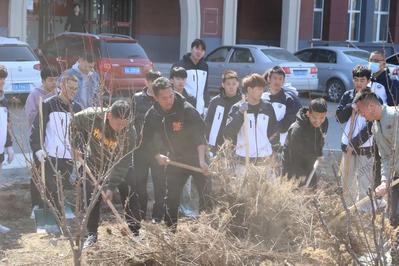 为积极响应学校党委号召,进一步贯彻党和国家关于加强劳动教育的有关精神,强化广大师生劳动意识和劳动实践能力。4月7日中午12:30分,在学院党政领导及辅导员老师的带领下,广大师生于应用楼前进行了以“爱党爱校、做美德青年”为主题的劳动教育实践活动。