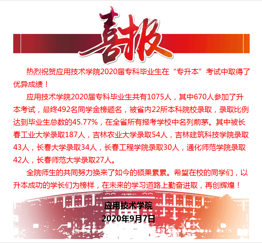 全院师生的共同努力换来了如今的硕果累累。希望在校的同学们,以升本成功的学长们为榜样,在未来的学习道路上勤奋进取,再创辉煌!
