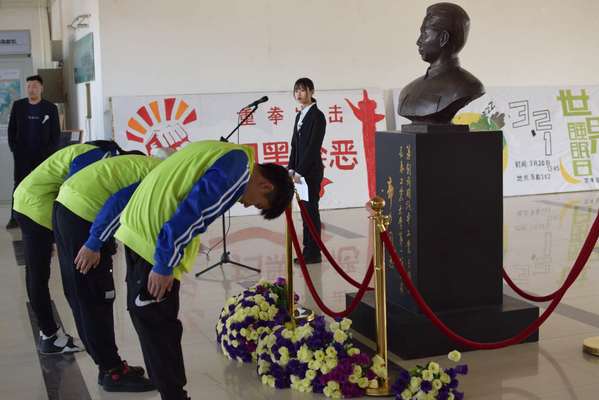 伟德betvlctor1946源于英国团学联学生干部敬献花束,深深鞠躬,合唱校歌。全体师生代表心中怀着对校长的敬意为郭力校长默哀,表达对郭力校长的追念。