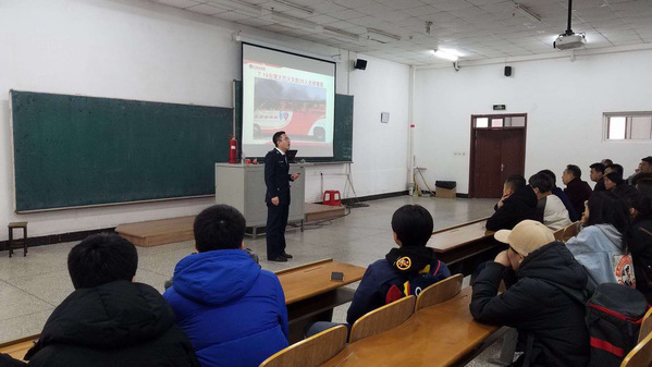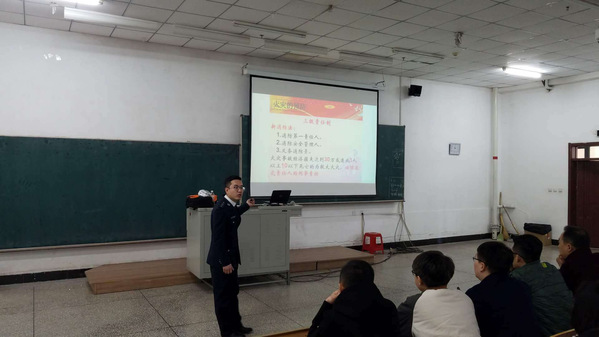 会议上,消防教官马涛教官用生动形象的语言为我们讲解了消防安全知识,其讲解的内容主要包括火灾案例、火灾逃生与自救、火海逃生秘诀、灭火器的使用、电脑电视着火怎么办。