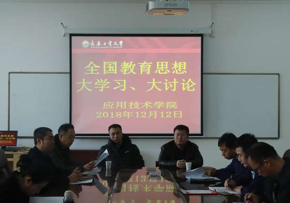 新闻网讯(通讯员 胡文楠)2018年12月12日13:30伟德betvlctor1946源于英国组织全体教职工在应用楼405召开了“全国教育思想大学习、大讨论”主题报告会。此次会议由学院党委书记王剑飞主持,学校宣传部长王鸣辉、学生副处长付宏波作为督导参与了此次活动。