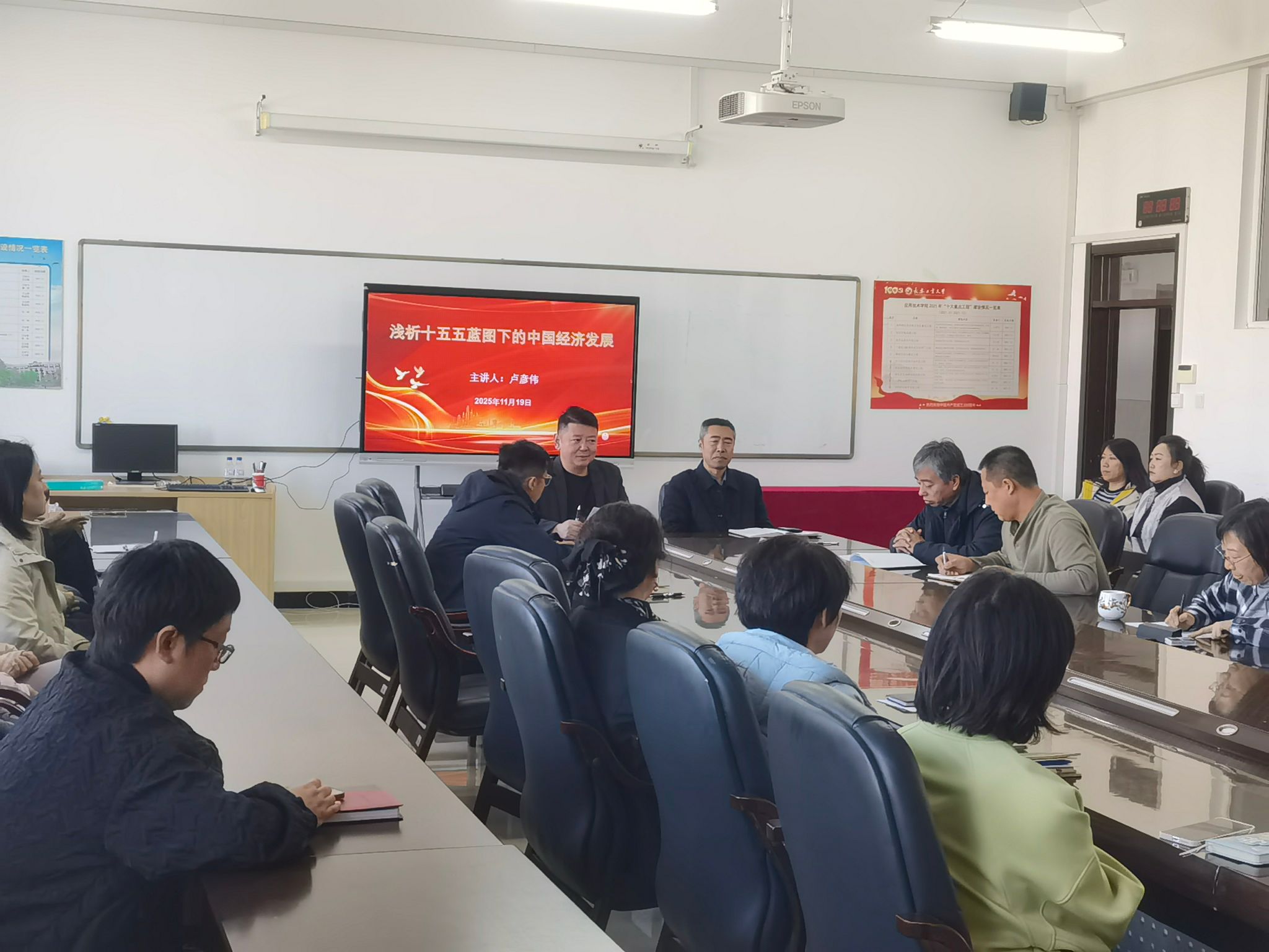 2025 年 11 月 19 日下午 14 时,伟德betvlctor1946源于英国党委书记卢彦伟在应用楼 405 室为全院教职工讲授《浅析十五五规划蓝图下的中国经济发展》专题党课,解读二十届四中全会公报精神与十五五规划蓝图。党课紧扣 “未来 5 年中国经济发展” 核心主题,从发展环境、重点任务、民生保障、国家大义等多维度展开,为全体教职工明晰时代方向、把握发展机遇提供了深刻指引。