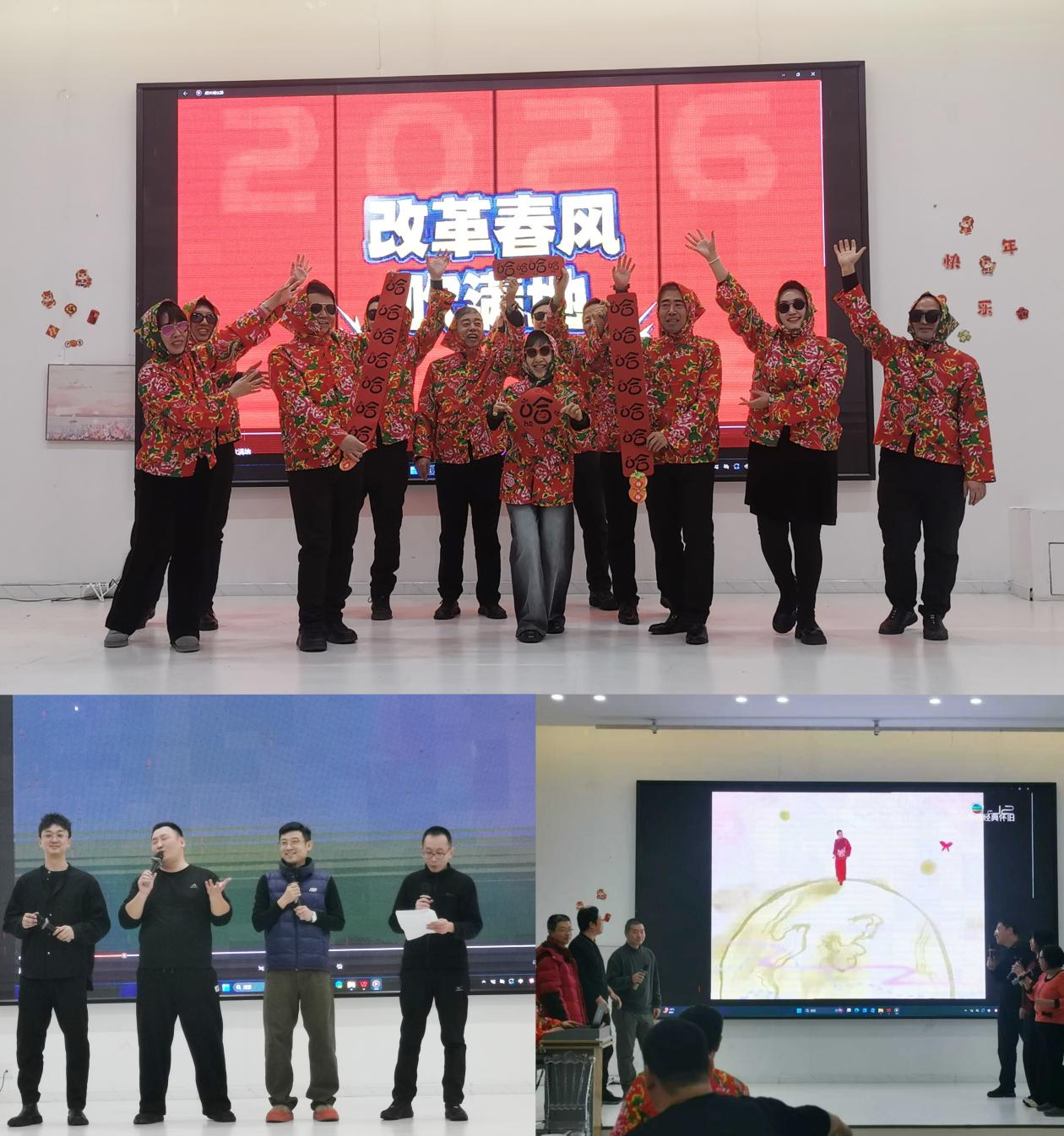 随后,精彩纷呈的节目轮番上演:网络与大数据工会的表演唱《恭喜发财》喜气洋洋,开篇即点燃节日氛围;办公室机电工会的舞蹈《改革春风吹满地》活力四射,展现时代发展的蓬勃朝气;学办工会的《笨小孩》《流星雨》或俏皮灵动或深情款款,唤起青春记忆。