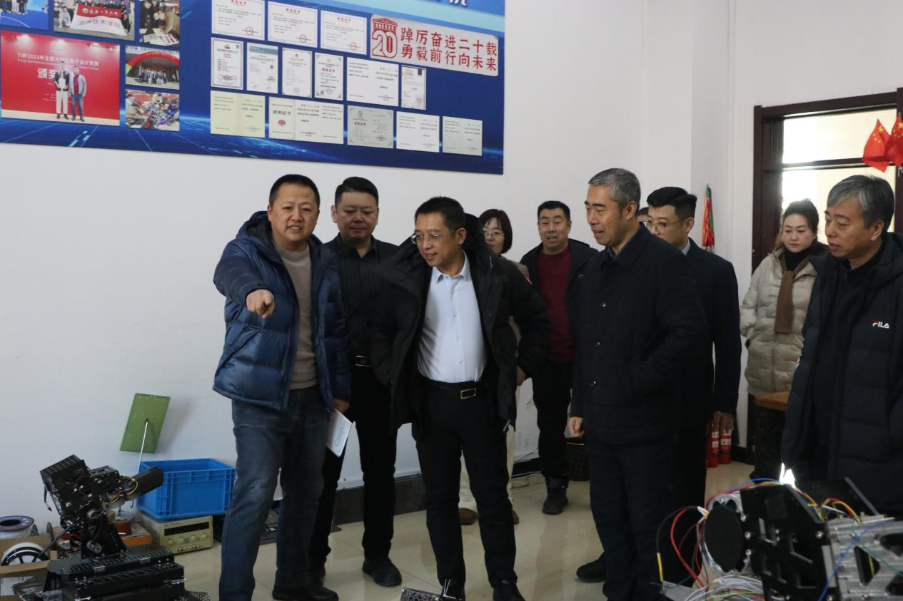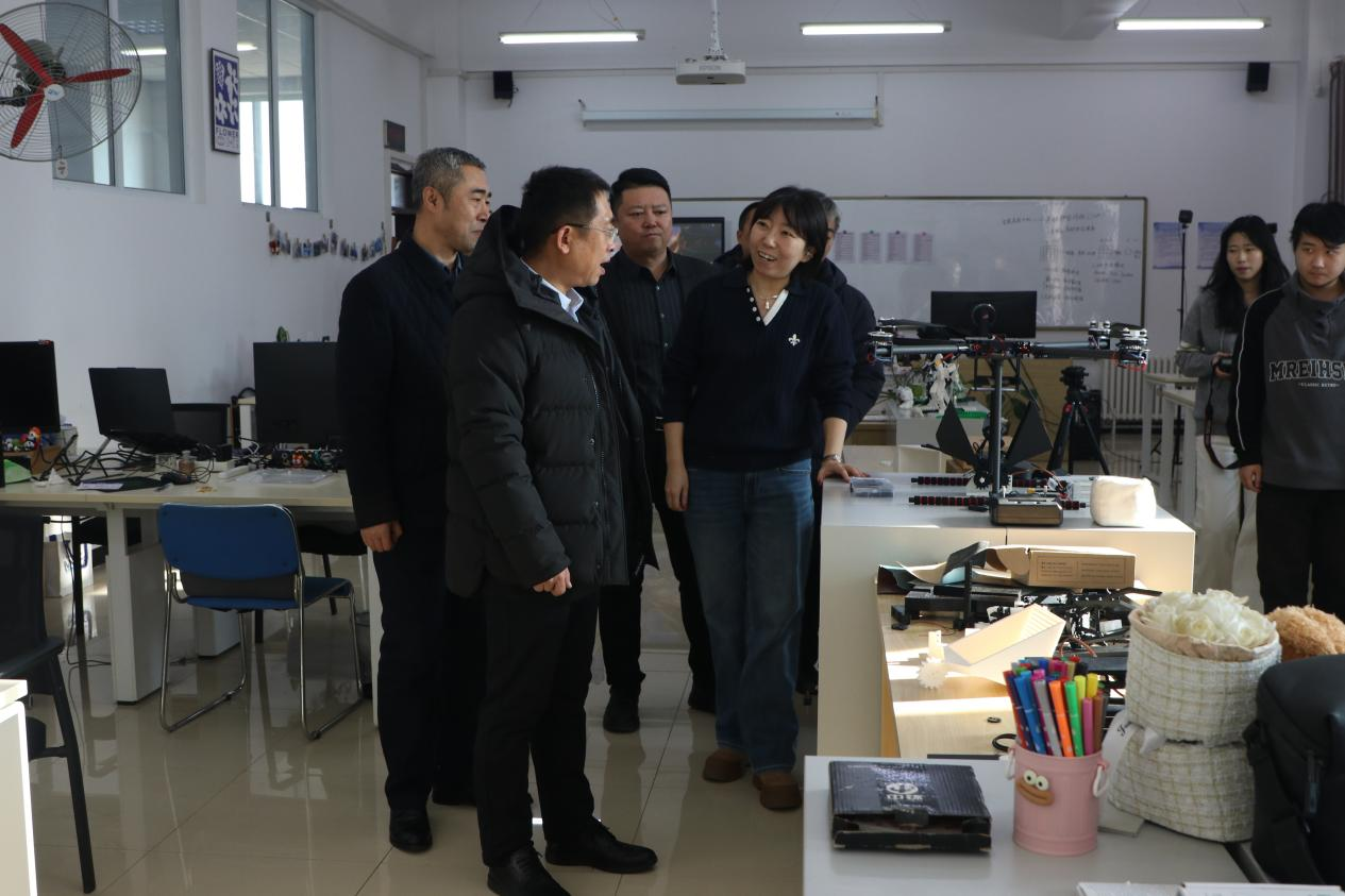 调研伊始,付跃刚校长率先走进学院创新实验室,实地察看创新实验室的基础设施保障、仪器设备教学适配性,重点了解学生依托实验室开展创新实践、参与学科竞赛及成果转化的具体情况。在听取实验室负责人关于“以学生能力提升为核心”的功能定位、创新实践项目开展、校企合作协同育人及助力学生专业能力与创新思维培养等工作汇报后,他与现场师生深入交流,重点询问创新实践项目的学生参与机制、覆盖专业范围,以及实验室实践教学如何助力学生专业技能夯实与创新能力提升等关键问题,对实验室以实践平台为依托,在强化学生专业技能训练、激发创新思维、提升创新实践能力等方面取得的扎实成效给予充分认可。
